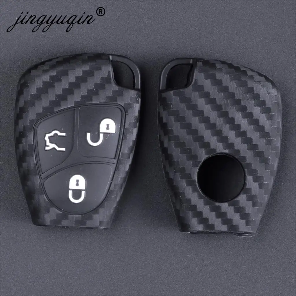 Keyforkess 3/4 pulsanti custodia portachiavi in Silicone a distanza per Mercedes Benz B C E ML S CLK CL 2B copertura portachiavi in fibra di carbonio Car Styling