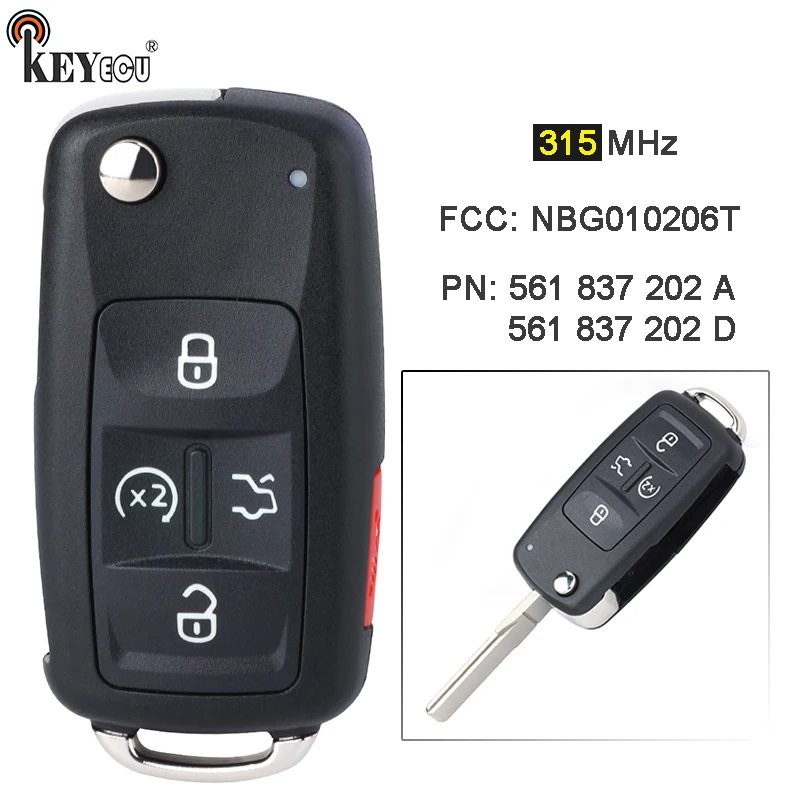 Keyforkess 315MHz ID48 Chip 561 837 202 A / 561837202D portachiavi A distanza per Volkswagen Golf Beetle Jetta Passat R32 Eos GTI Rabbit CC