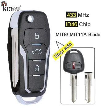 Keyforkess 433MHz ID46 aggiornato Flip 2 pulsanti telecomando portachiavi per Mitsubishi Pajero, Lancer e Outlander sinistra/MIT11R lama destra