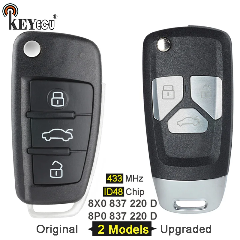 Keyforkess 433MHz ID48 P/N:8P0 837 220 D / 8X0 837 220 D telecomando a 3 pulsanti Flip originale/aggiornato per Audi A1 A3 RS3 S3 Q3 TT