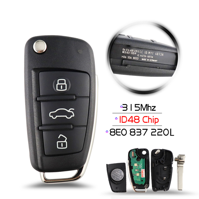 Chiave/Telecomando Per Audi A2 A3 A4 A6 A6l A8 Q7 – 3 Pulsante Flip Pieghevole 315/433mhz Chip/chip Vetro Id48 8e Chip Audi